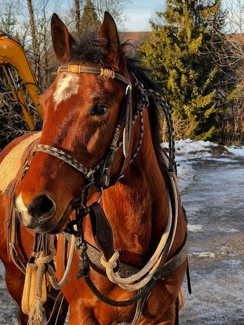 Inzwischen machten wir viel Bodenarbeit und Gewöhnung an alles Mögliche. Beim Longieren geht sie in allen Gangarten im Gleichgewicht, wird jetzt ans Reitergewicht gewöhnt und wird im Februar 2026 in den Profiberitt gehen.